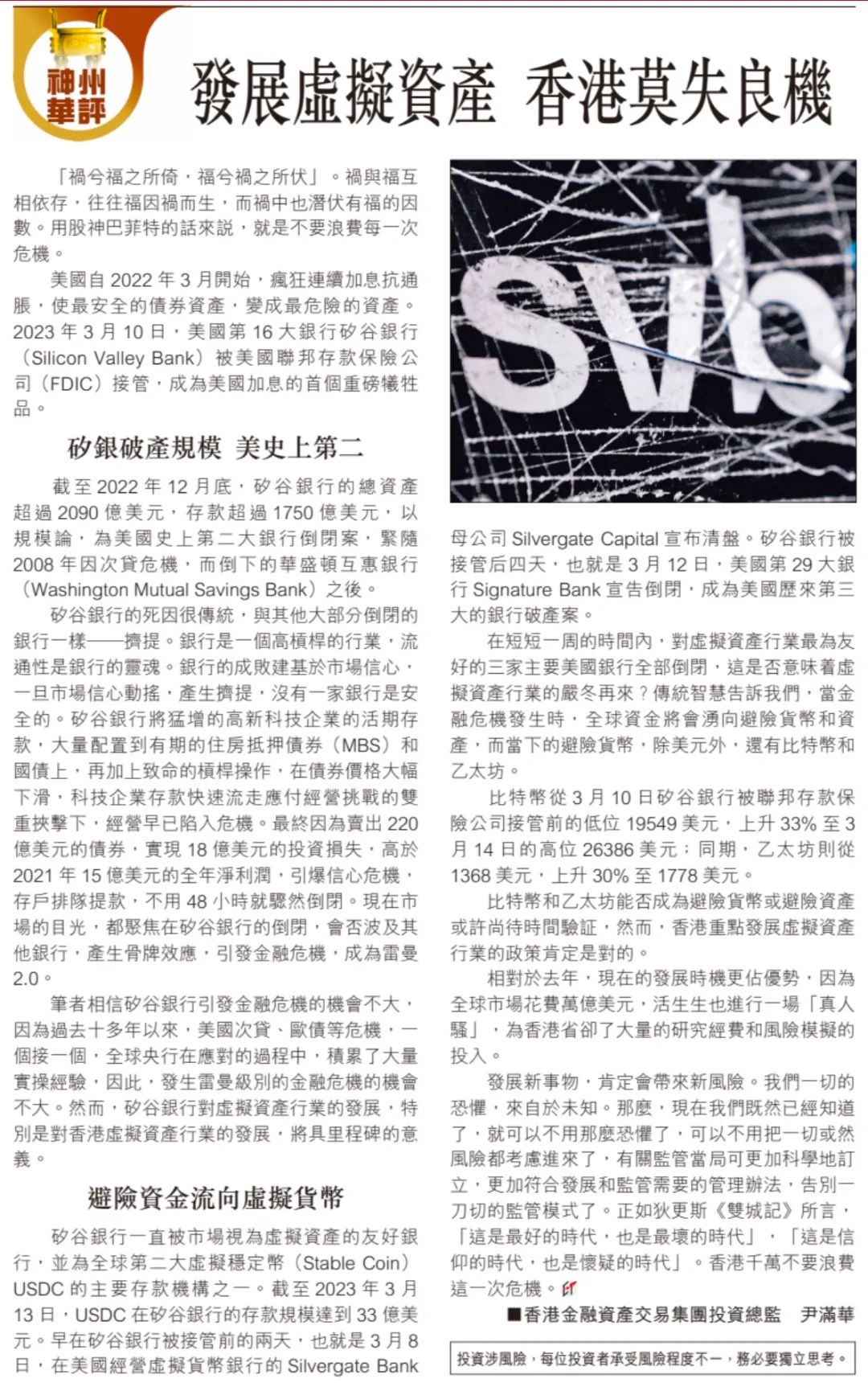 笔者相信硅谷银行引发金融危机的机会不大,因为过去十多年以来,美国次贷、欧债等危机,一个接一个,全球央行在应对的过程中,积累了大量实操经验,因此,发生雷曼级别的金融危机的机会不大。然而,硅谷银行对虚拟资产行业的发展,特别是对香港虚拟资产行业的发展,将具里程碑的意义。
