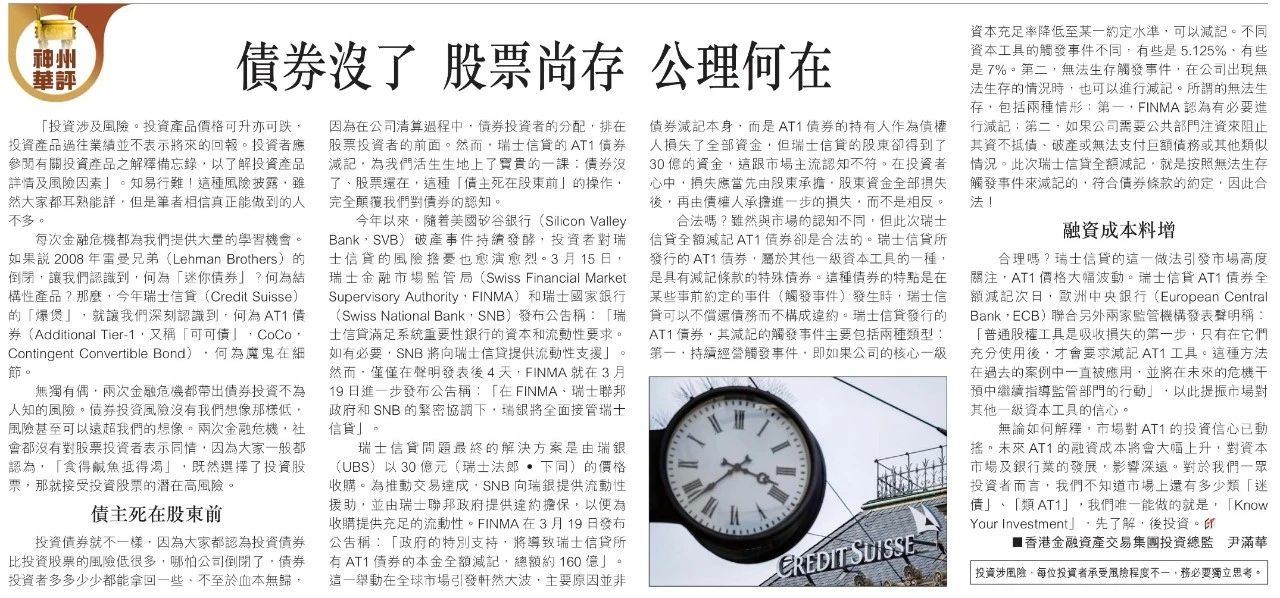 每次金融危机都为我们提供大量的学习机会。如果说2008年雷曼兄弟的倒闭,让我们认识到,何为「迷债」?何为结构性产品?那幺,今年瑞士信贷的倒闭,就让我们深刻认识到,何为ATI债券,何为魔鬼在细节。